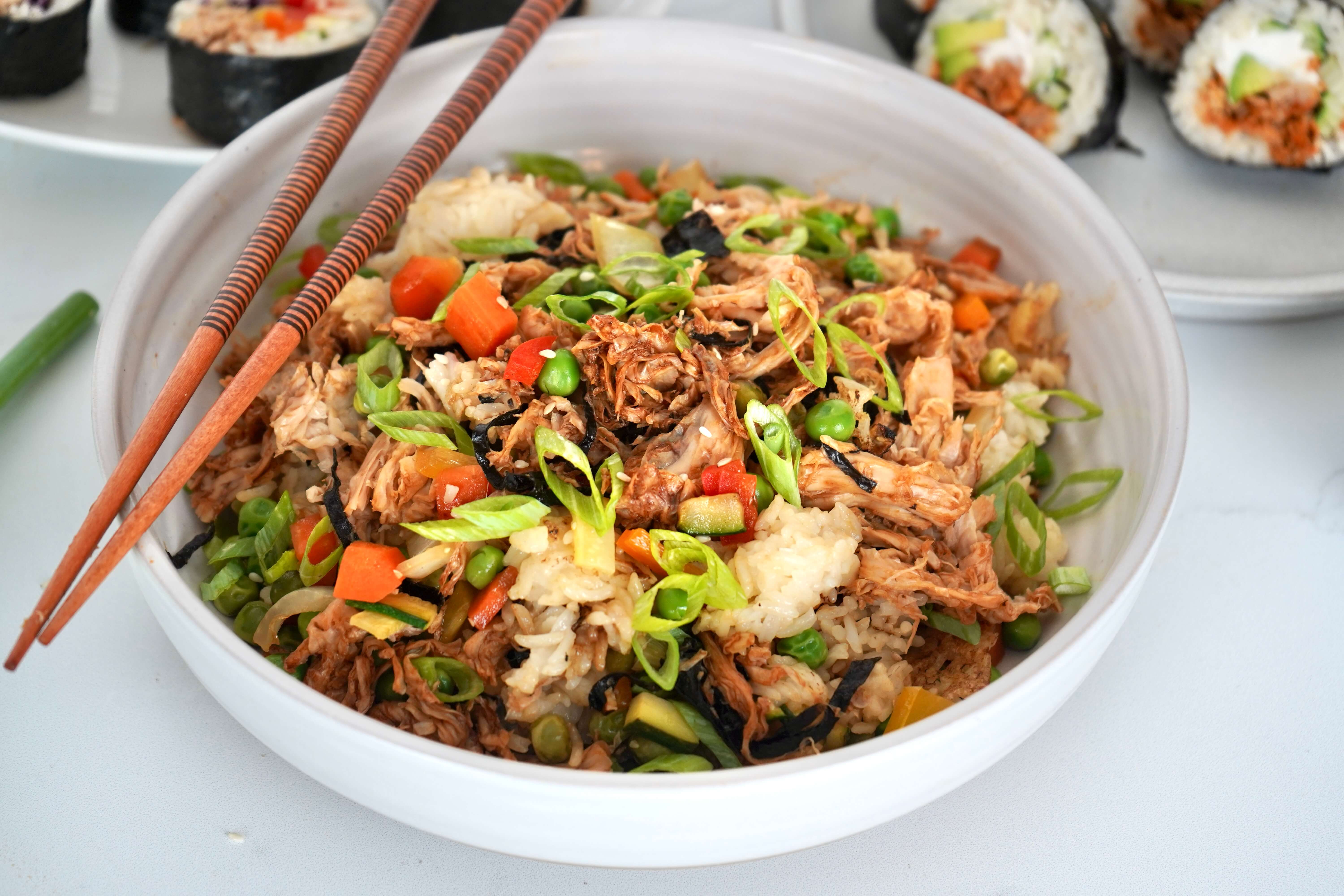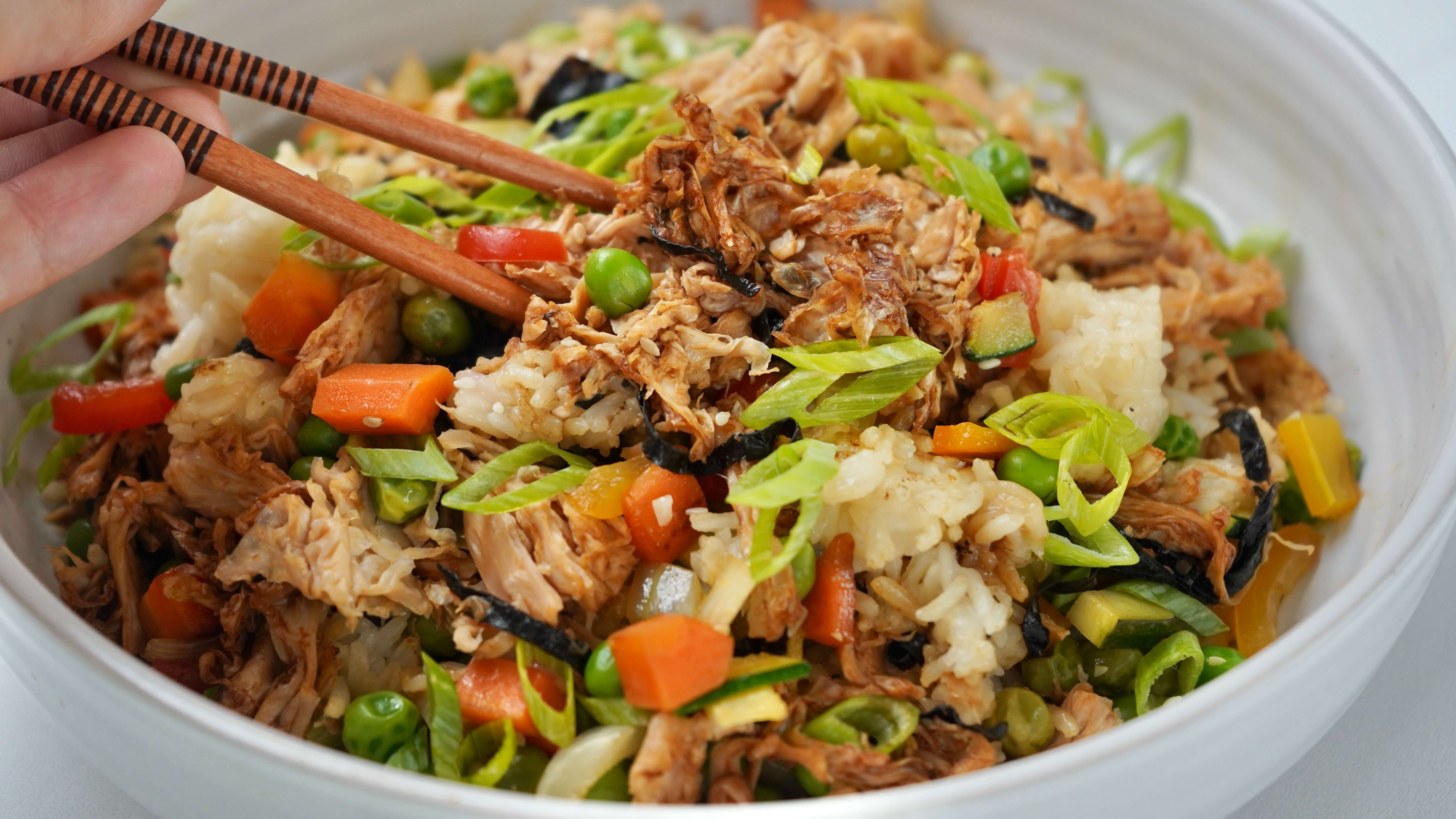 Discover the deliciousness of our plant-based Yakimeshi recipe, featuring Better-Balance plant-based shreds as a delightful chicken substitute. This vegan version of the classic Japanese fried rice boasts a medley of flavors from colorful vegetables, savory plant-based shreds, and a touch of umami.